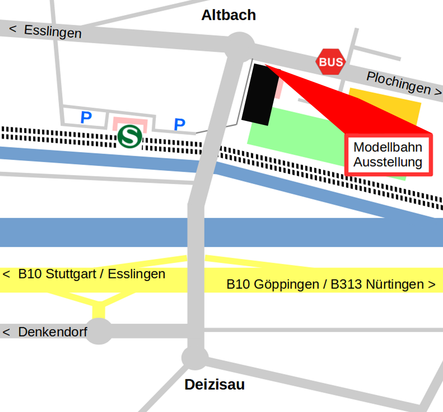 nur wenige Minuten. Direkt vis-a-vis ist die Bushaltestelle der Buslinie 140 Esslingen-Plochingen. Wenn Sie mit dem Fahrzeug via B10 anreisen, wählen Sie die Ausfahrt